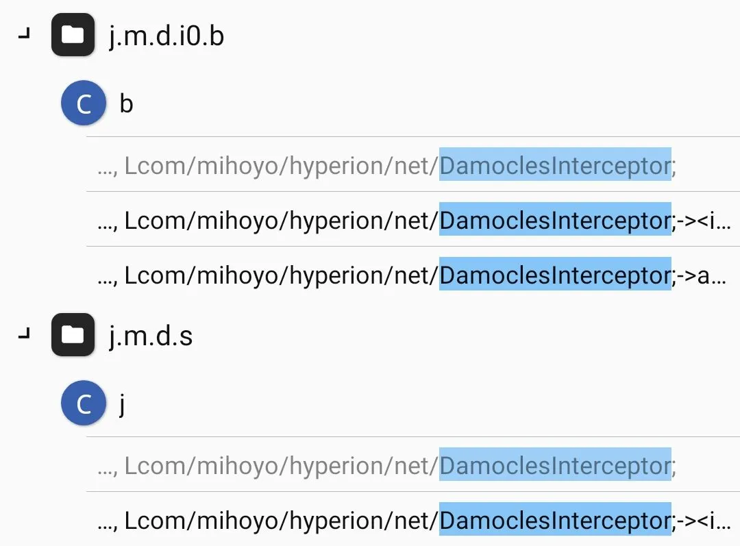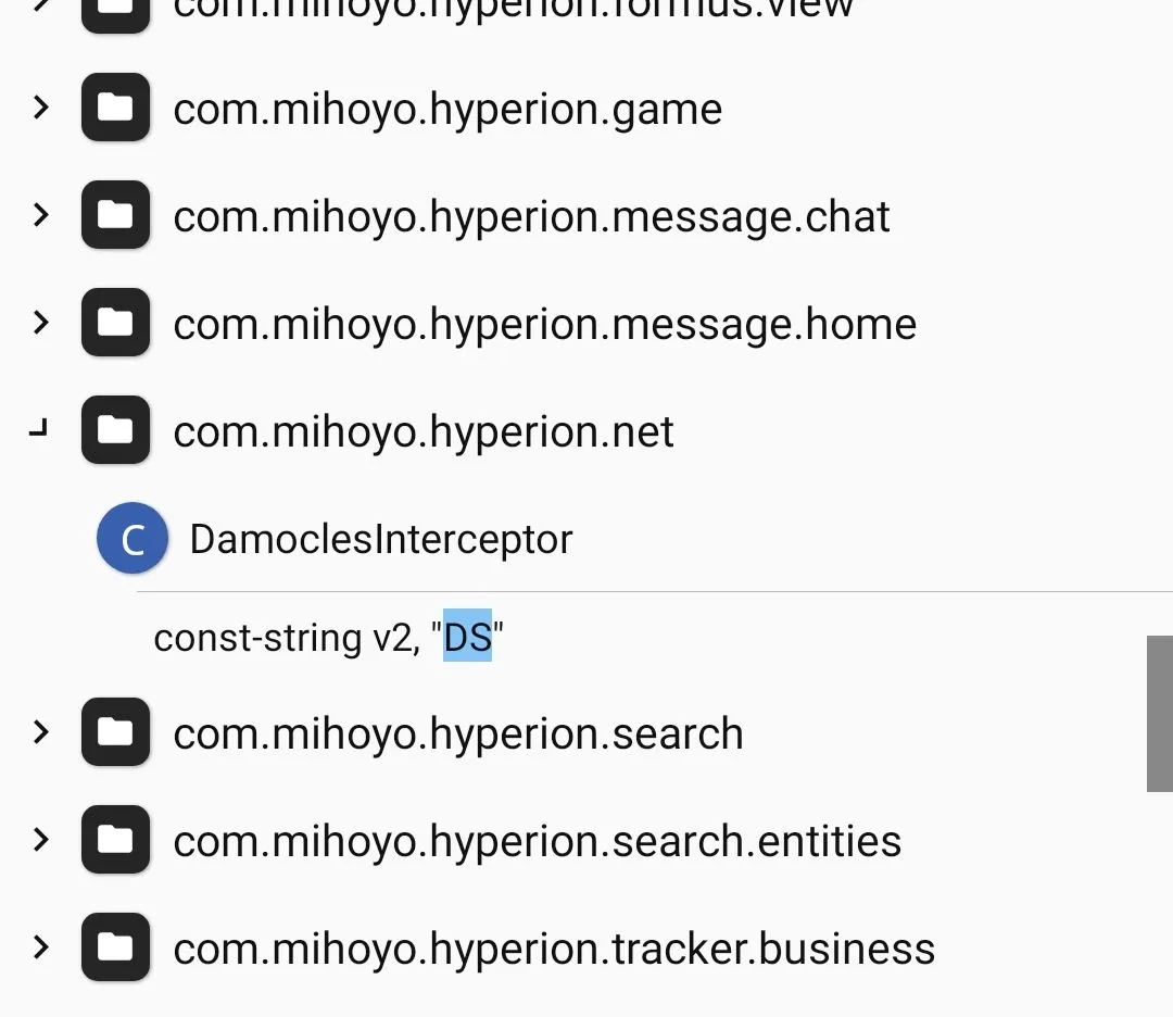 找到 809 个结果,不过也没啥,明显android.xxx、com.google.xxx之类的应该没啥关系,直接看com.mihoyo.xxx的就行。不太清楚为啥 MT 管理器搜索代码的时候就不能全字匹配,不过也无所谓,人工全字匹配也罢。